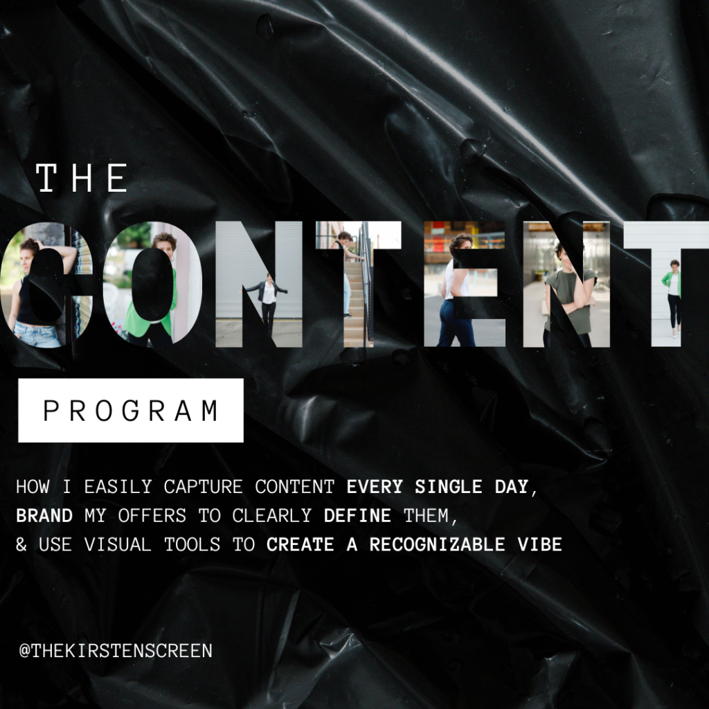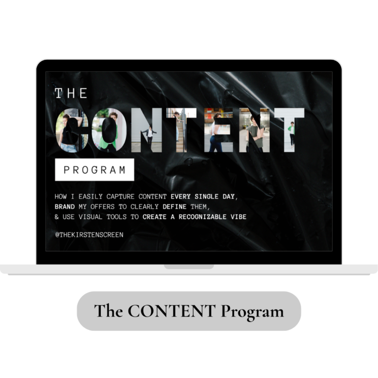 The Content Program shows you exactly how I create content every single day, brand my offers to be crystal clear, and use visuals to build a recognizable online vibe that sells.